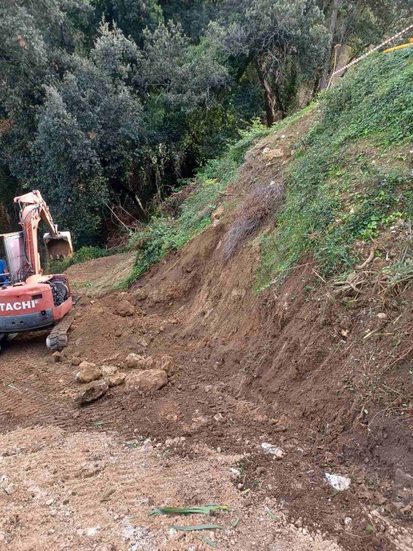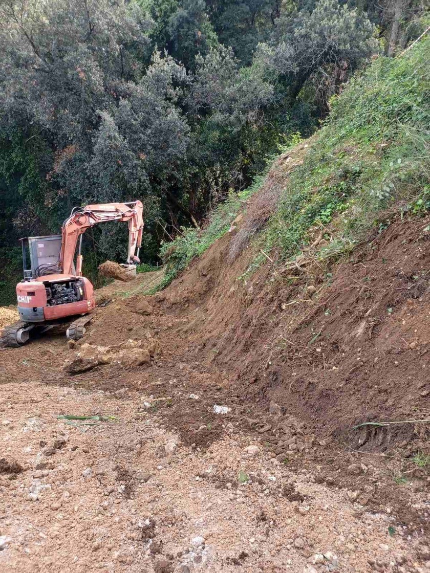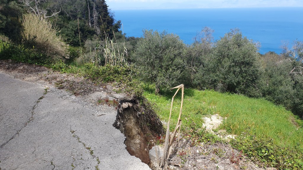 A year ago, torrential rain caused a landslide in the upper right-hand corner of the plot. It came very close to destroying the road above, so we were lucky that didn’t happen. However, together with our engineer, we made the expensive decision to reinforce this part of the hill with stones in gabions. There was no other choice, as the possibility of sliding earth would have destroyed the access road.