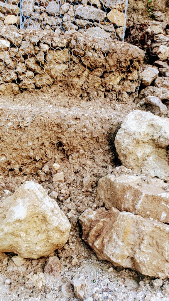 Yesterday there was a hailstorm with a huge amount of water. You can see that the water from above is failing and flowing over our fortified hill – it looks like everything is working.