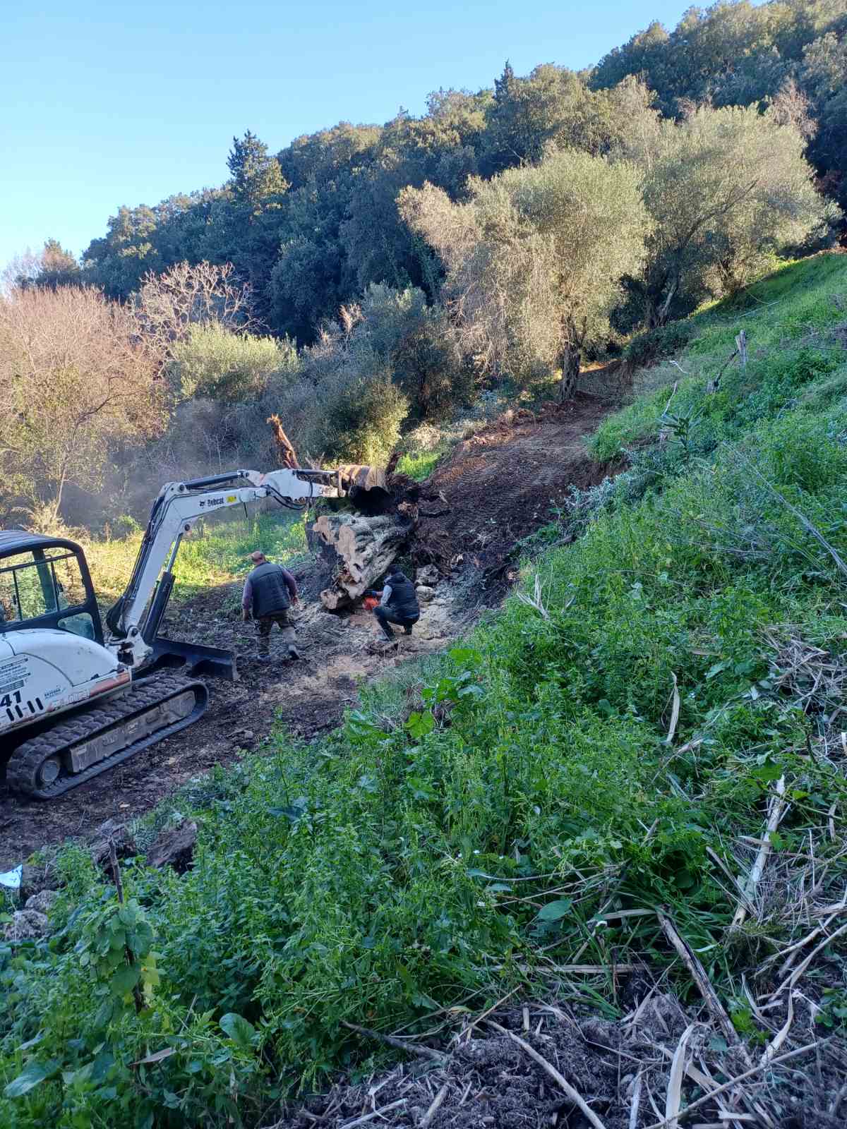 The construction of the house begins with the destruction of an olive tree that is more than a century old.