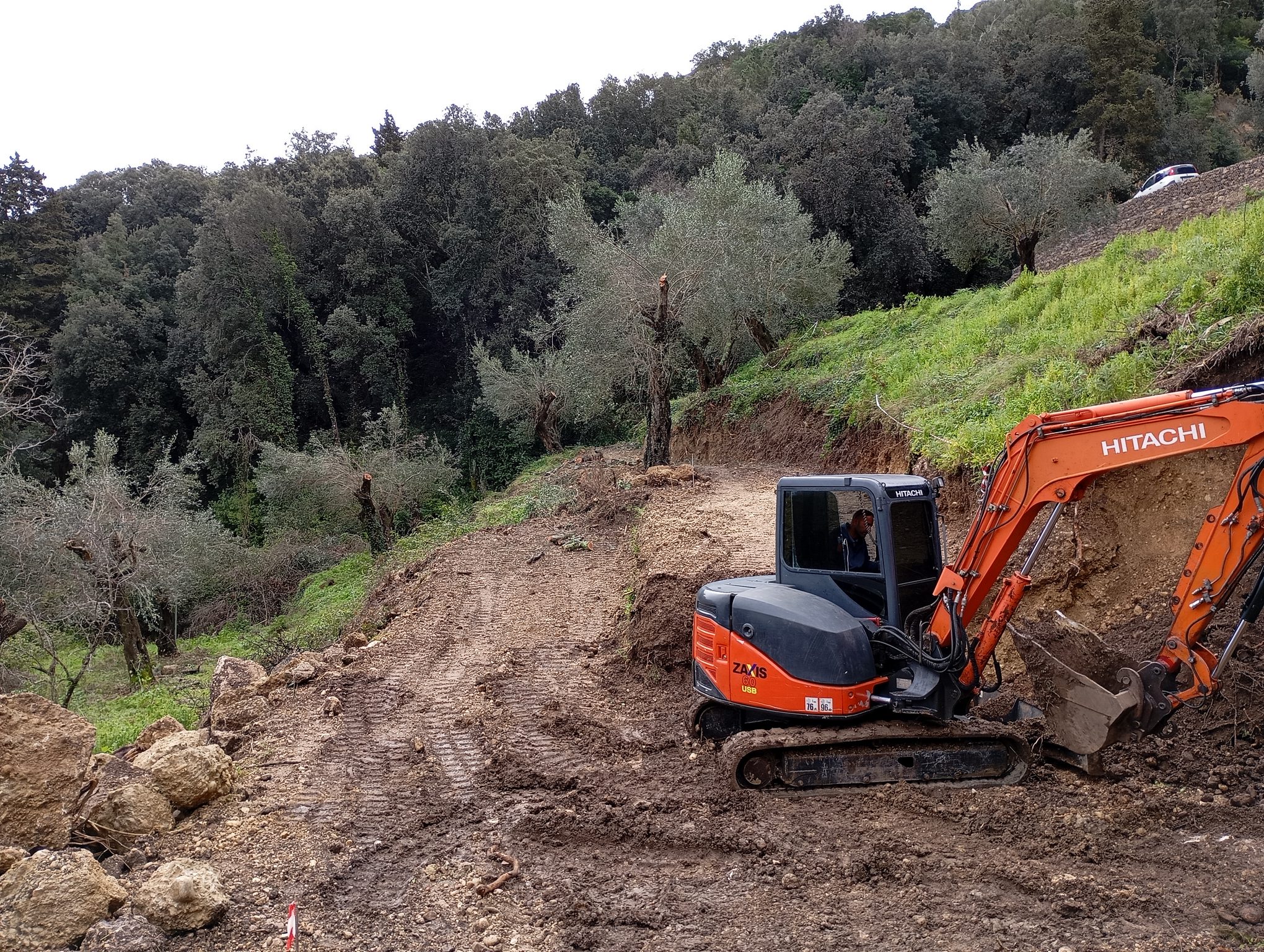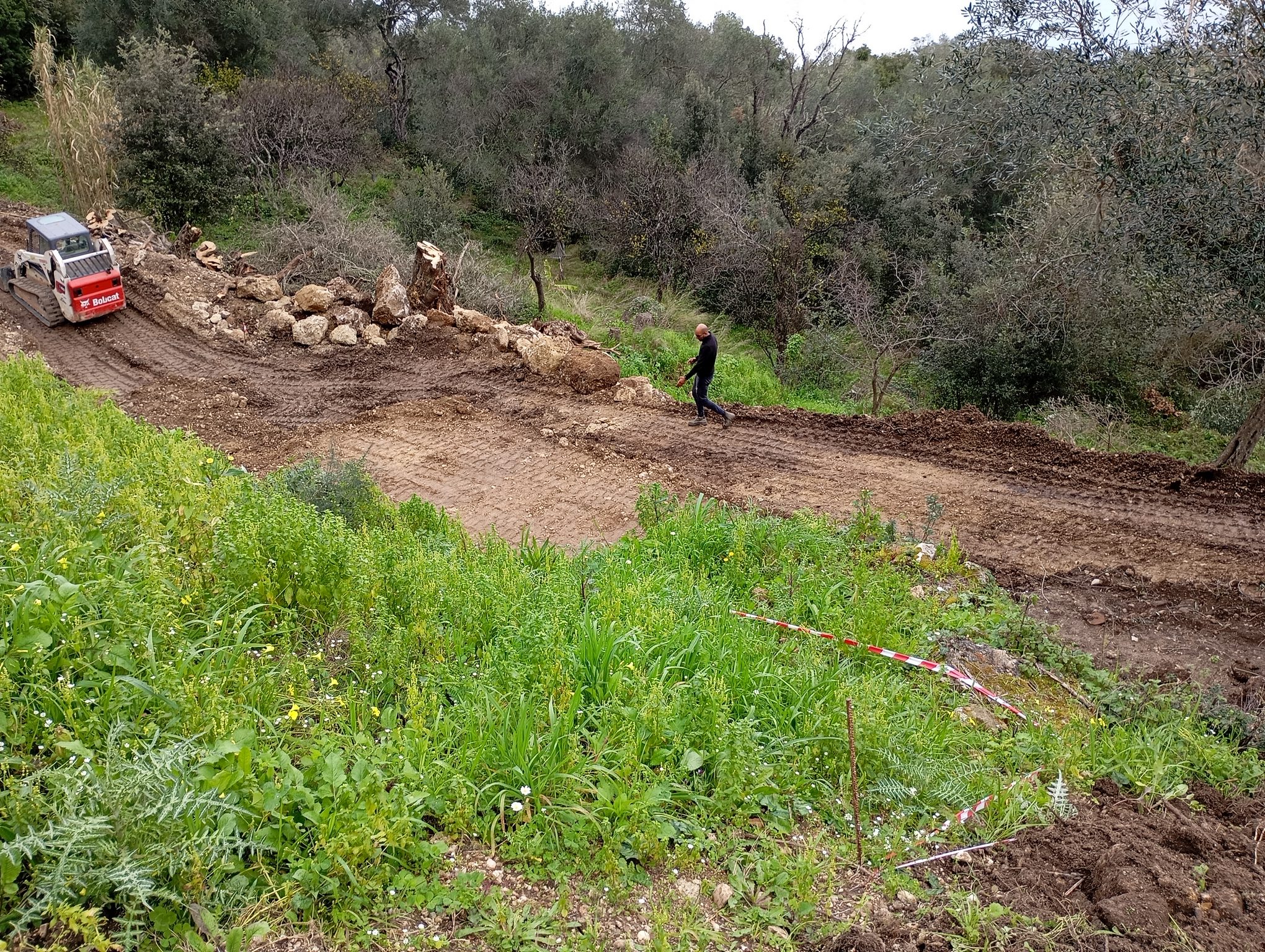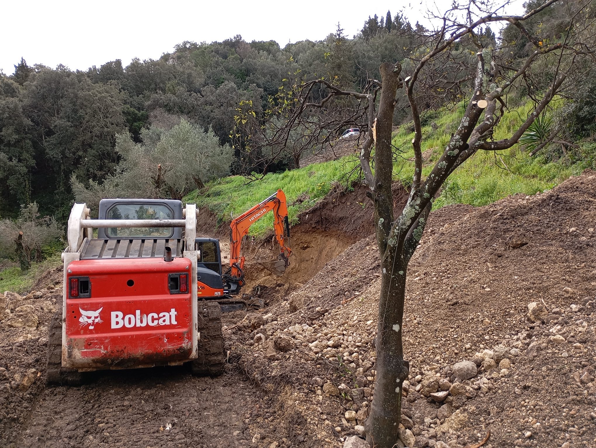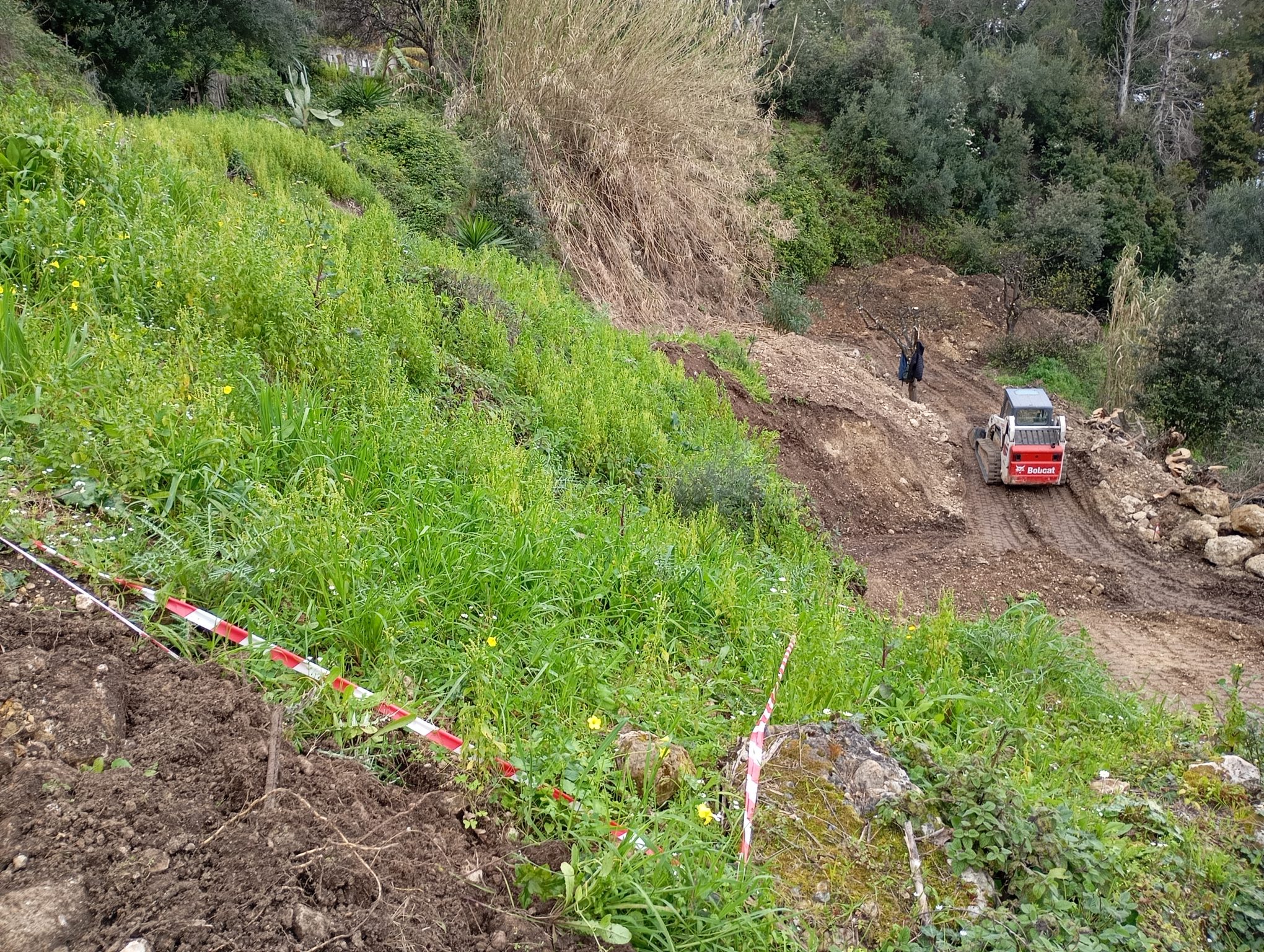 In addition to the construction work, we have also decided to trim the olive trees so that they can start licking their wounds from this year. Also the big bunch of reeds (top middle) has to be removed, as well as orange trees apparently killed by soothy mold.