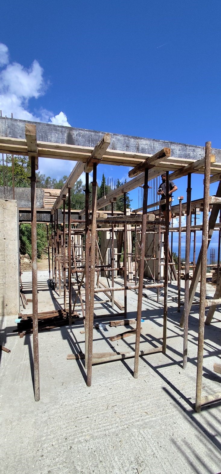 After a month of Greek plagues: temperatures, torrential rains, covid-19, August – Edi and his team are preparing to last pouring of the concrete for the house (except the pool and retaining walls of course).