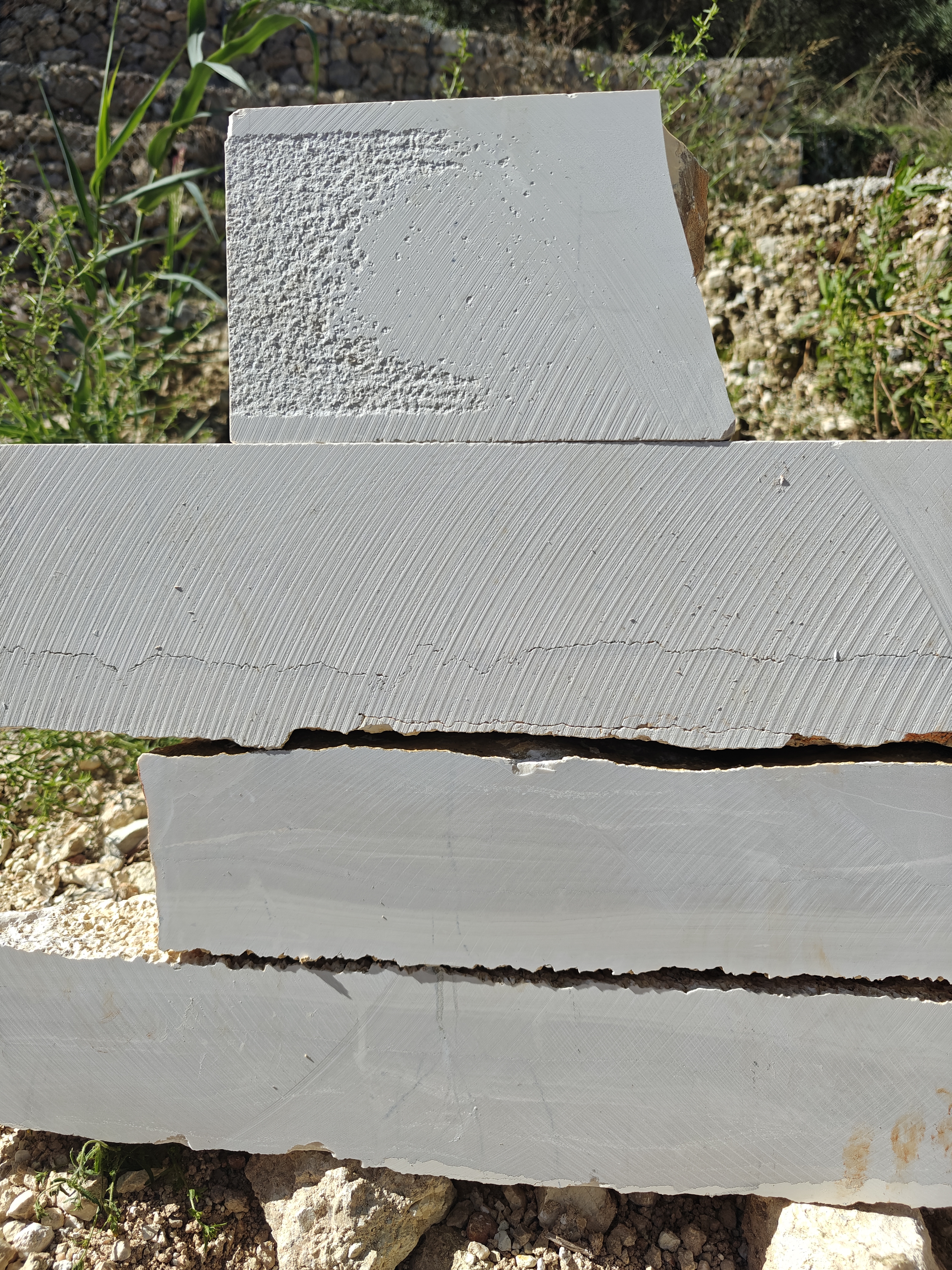 Last week we received three samples: from Joanina, Igoumenitsa and Perithia in Corfu. These stones differ, both in shade and in the way they split – Joanina is practically white (too white!) and not very manageable to make irregular shapes with.