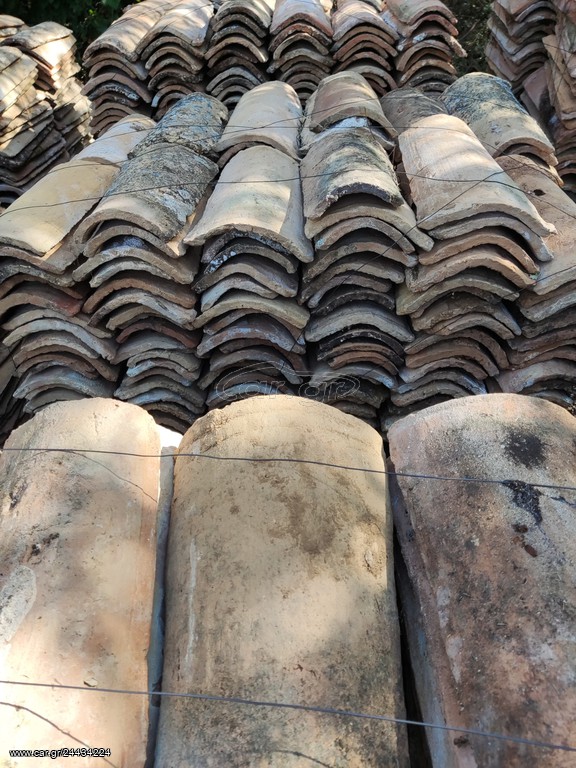 Aesthetically, it is at least similar to what we see in the neighbourhood. With Chlomos – probably the second oldest village on the island – just around the corner, the correct tile would be the classic type (canal type / coppa / monk-nun), yellowish, mounted on cement.