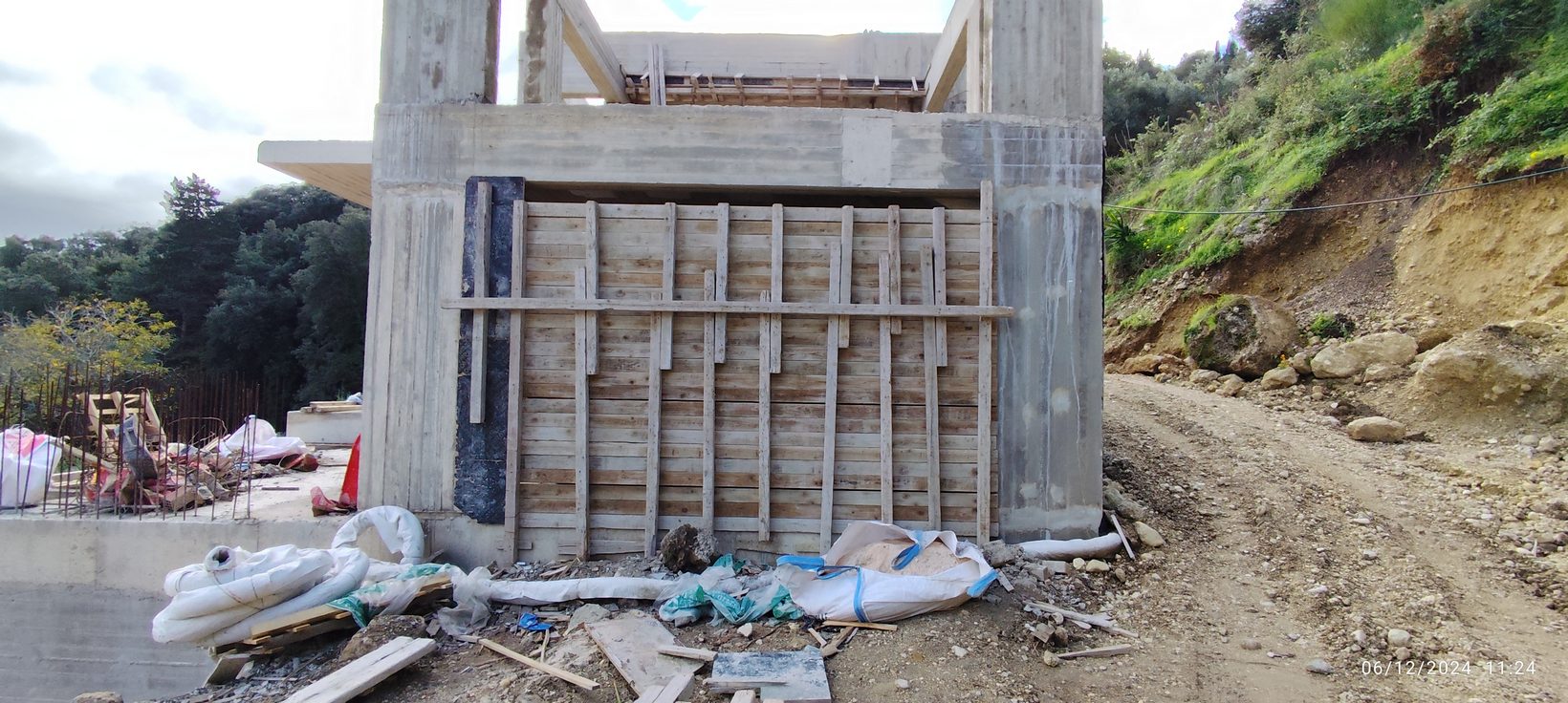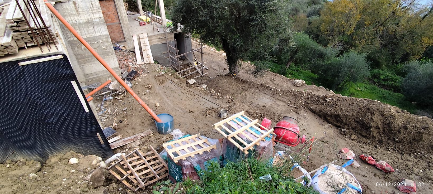While the masons have started to brick the walls on the first floor of the house, Edi is preparing the cour anglaise – underground windows to light up the staircase and one of the bathrooms in the section recessed into the hill.