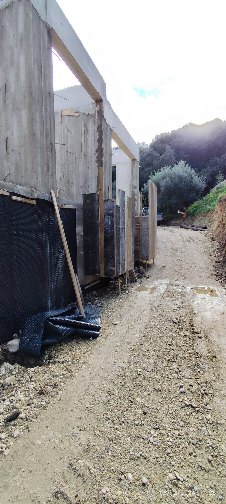(added after 3 weeks) Once cour anglaise is poured, they could finally backfill the construction and start making the access road and some landscaping.